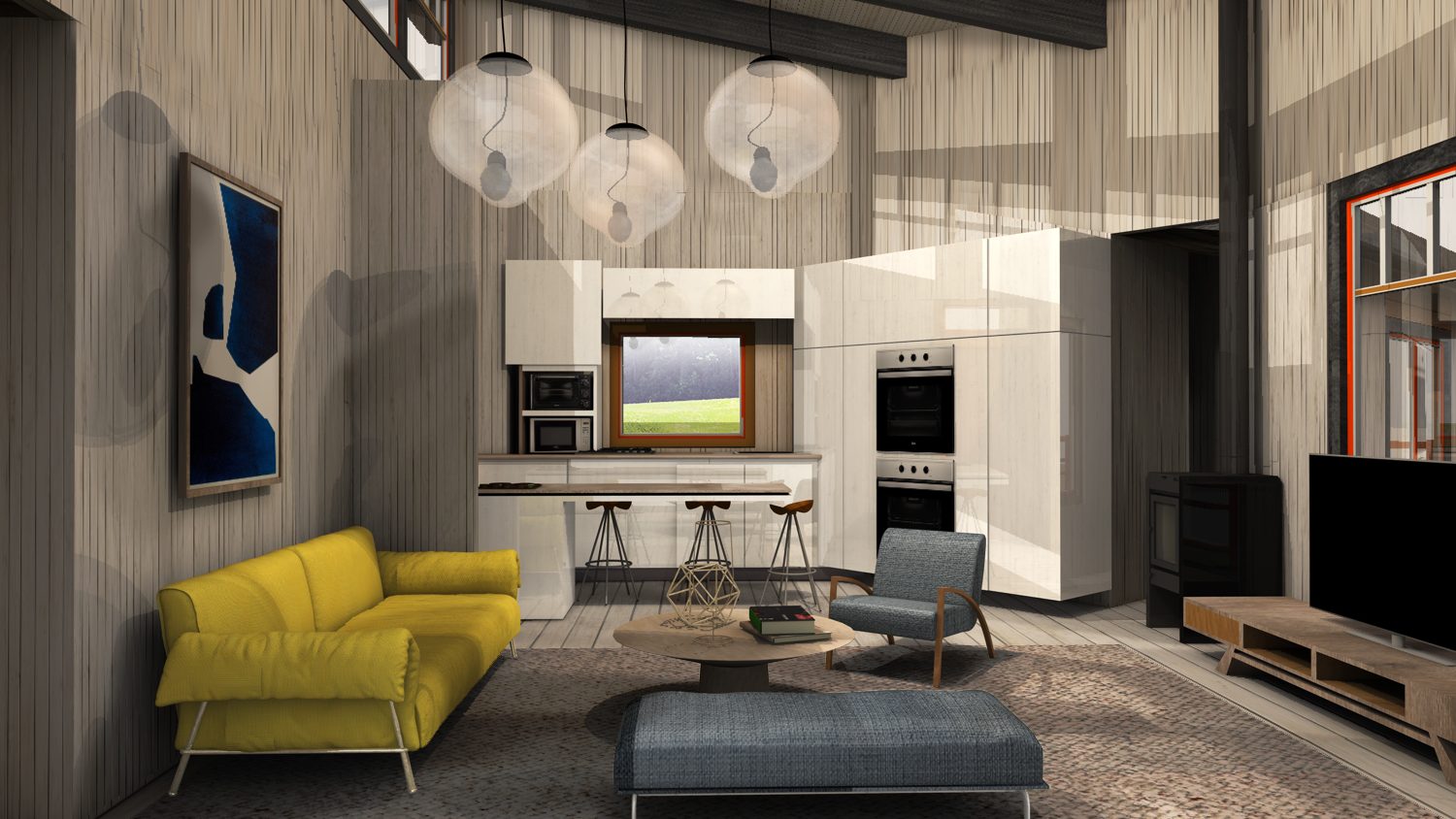 2 habitaciones con baño en suit, gran espacio común central con cocina americana y sala de estar, 2 terrazas con 2 orientaciones para una experiencia panorámica.